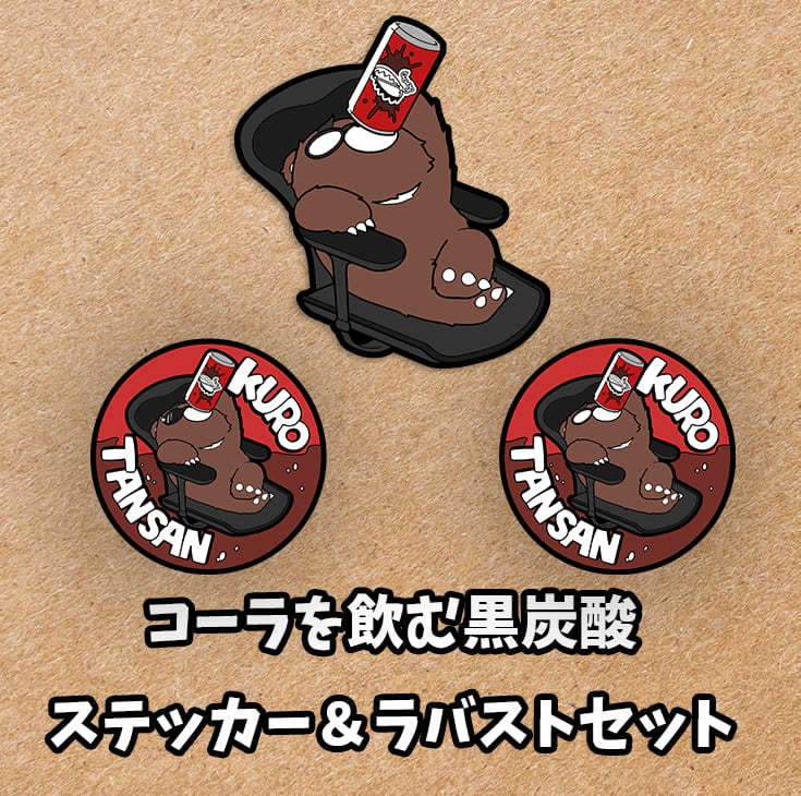 コーラを飲む黒炭酸2種ステッカー&ラバストセットです。